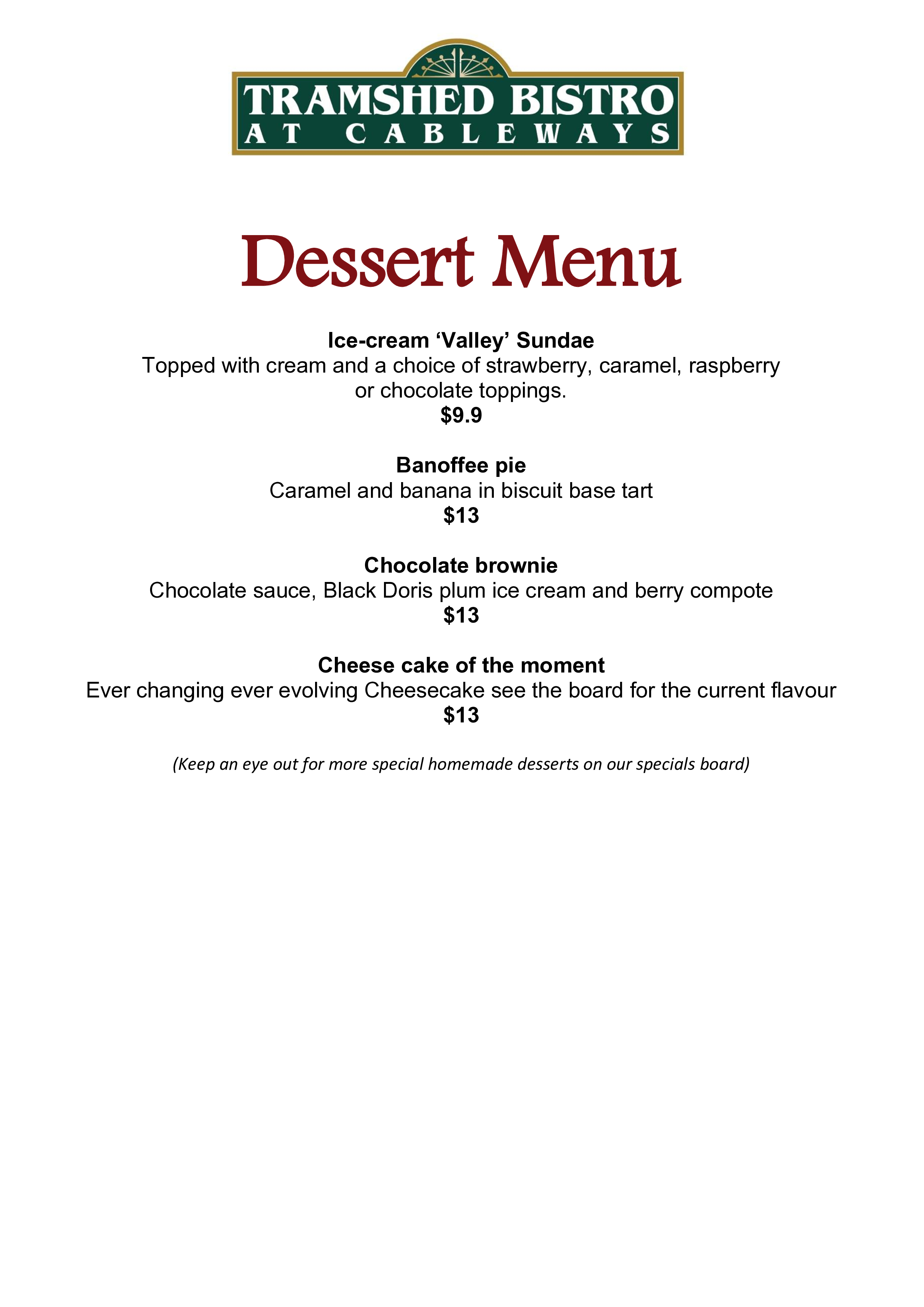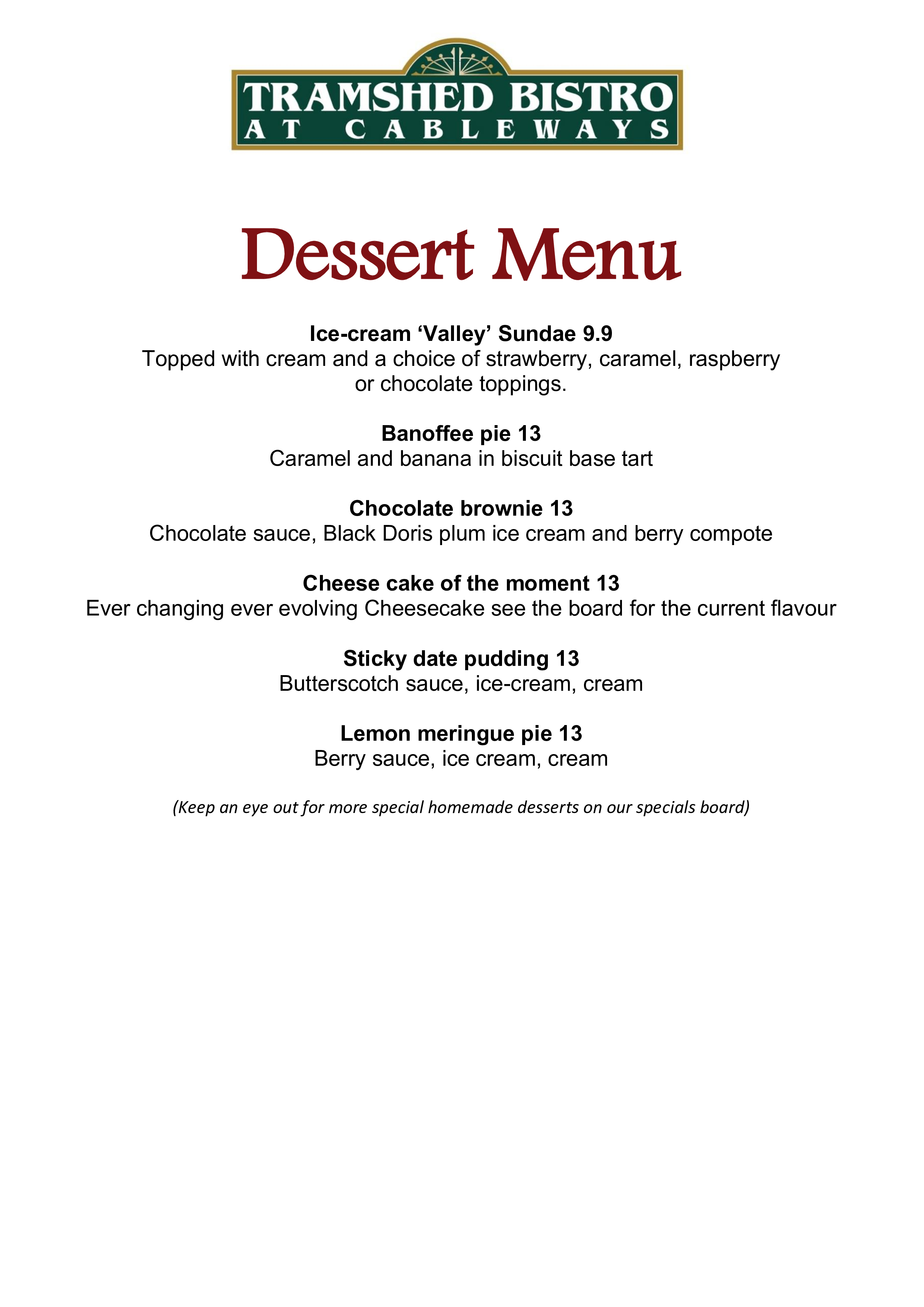 Dessert menu